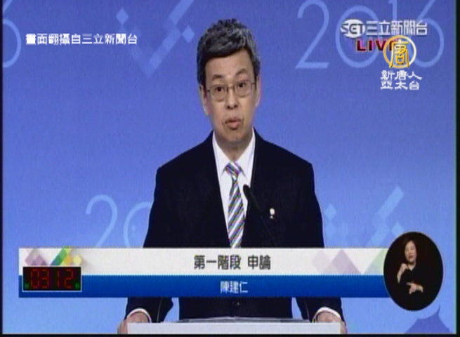 【新唐人亞太台 2015 年 12 月 26 日訊】民進黨副總統候選人陳建仁申論時,專攻青年選票,提出4大方向改革,「產業升級」、「友善年輕人的創業環境」、「解決教育體系的落差」、「減輕年輕人居住及家庭照顧的負擔」等,強調他與蔡英文已經做好了領導這個國家的準備,「錯誤的施政不能再忍耐」。