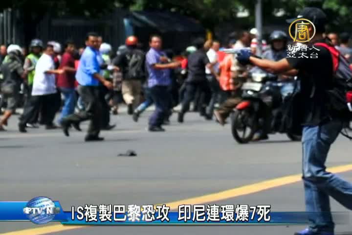 【新唐人亞太台 2016 年 01 月 15 日訊】週四,印度尼西亞首都雅加達,發生連環爆炸,歹徒與警察發生槍戰,造成至少七人死亡。伊斯蘭國恐怖組織,稍後出面,宣稱犯下這起案件。