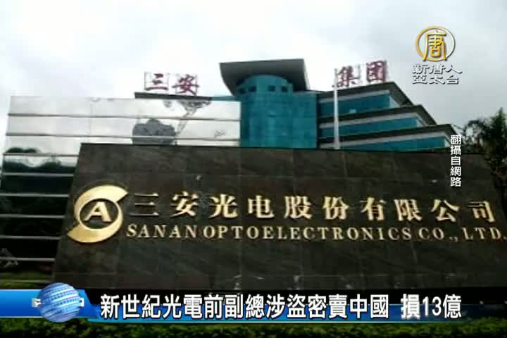 【新唐人亞太台 2016 年 01 月 26 日訊】股票上市公司新世紀光電,離職的執行副總暨科技長李允立,涉嫌將公司機密寄給中國競爭對手三安光電,並由三安出資在台灣開設公司。檢方昨天將李允立等十名嫌疑人約談到案。新世紀發布重大訊息,要求對手停止竊取營業機密,新世紀估算,2014年3月到現在,損失已經超過13億元。