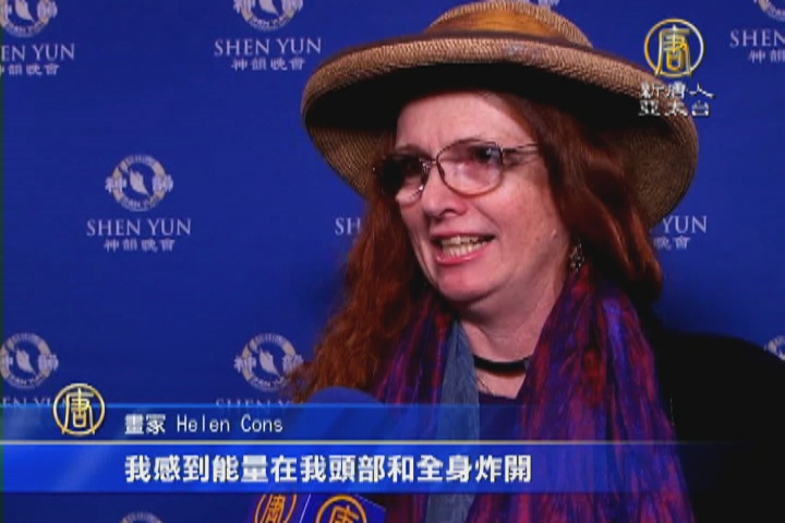 畫家Helen Cons:「絕對的,難以置信的美。好幾個舞蹈都讓我感動流淚,我和朋友全身都在震顫,心中充溢著能量,我感到能量在我頭部和全身炸開,我情不自禁的流淚,心中充溢著對中國人的愛。」
