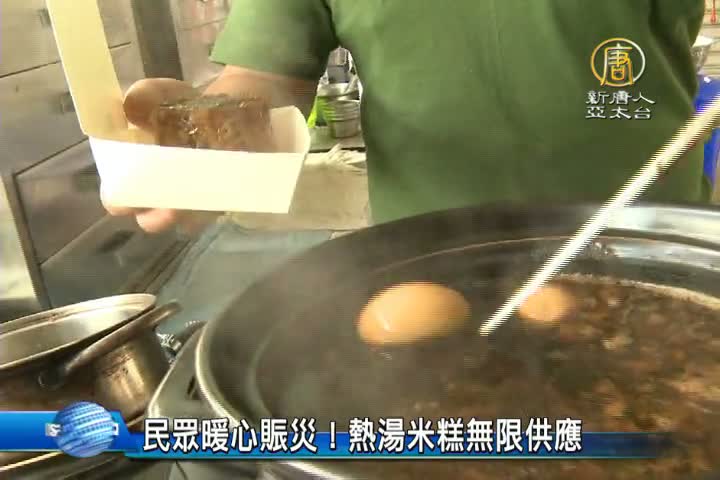 【新唐人亞太台 2016 年 02 月 09 日訊】歡迎回來。維冠大樓災區救援工作持續進行,而在緊鄰救災現場的騎樓底下,瓦楞紙寫著熱湯、米糕免費供應,這是熱心店家將原本過年做生意的備料,轉為對救難人員的貼心補給。