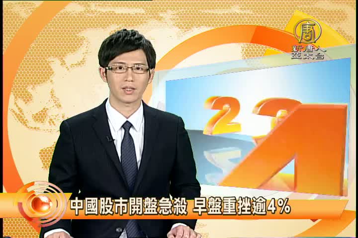 【新唐人亞太台 2016 年 02 月 29 日訊】台股今天因為連假休市,但來看到中國股市,今天開盤再度出現重挫,上證綜合指數早盤一度大跌超過4%。上證指數今天開低走低,早盤一度大跌超過百點,跌幅超過4%,失守2700點關卡。