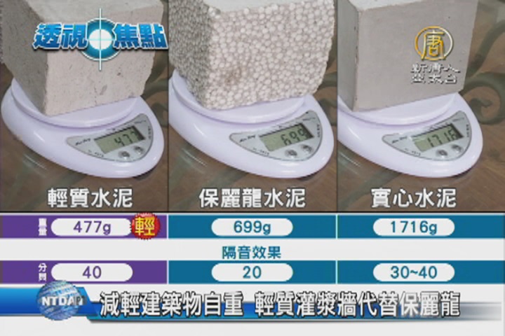 【新唐人亞太台 2016 年 03 月 04 日訊】美濃強震造成台南維冠大樓災情嚴重,也震出結構問題。可是,現在大樓越蓋越高,究竟要如何幫建築物減輕本身的重量?是極為重要的問題。常見的有保麗龍水泥和空心水泥牆面,雖然能達到減重,不過,隔音、隔熱效果比較不佳,還能有什麼選擇?帶您來了解。
