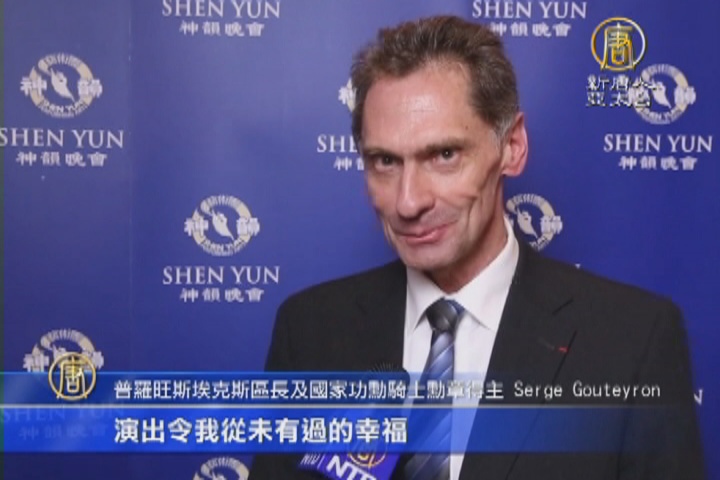 普羅旺斯埃克斯區長,法國榮譽軍團及國家功勳騎士勳章得主與法國羅納河口省國家功勳獎章協會主席在觀看了神韻在Aix的第一次演出後,感到從未有過的幸福平靜,忘記了一天的憂慮。