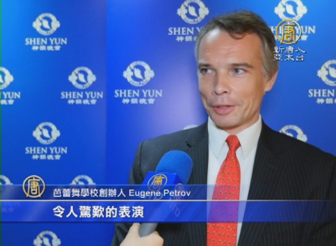 芭蕾舞學校創辦人 Eugene Petrov:「我被神韻舞蹈及表現的人物深深吸引,我在演出中看到鮮明的人物刻畫、令人驚嘆的服飾,以及代表性的民族舞和人物舞劇。」