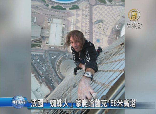 【新唐人亞太台 2016 年 04 月 25 日訊】以徒手攀爬而國際知名的法國「蜘蛛人」,近日來到了哈薩克首都,爬上了168米高的埃森泰塔。過程緊張驚險。馬上來看。