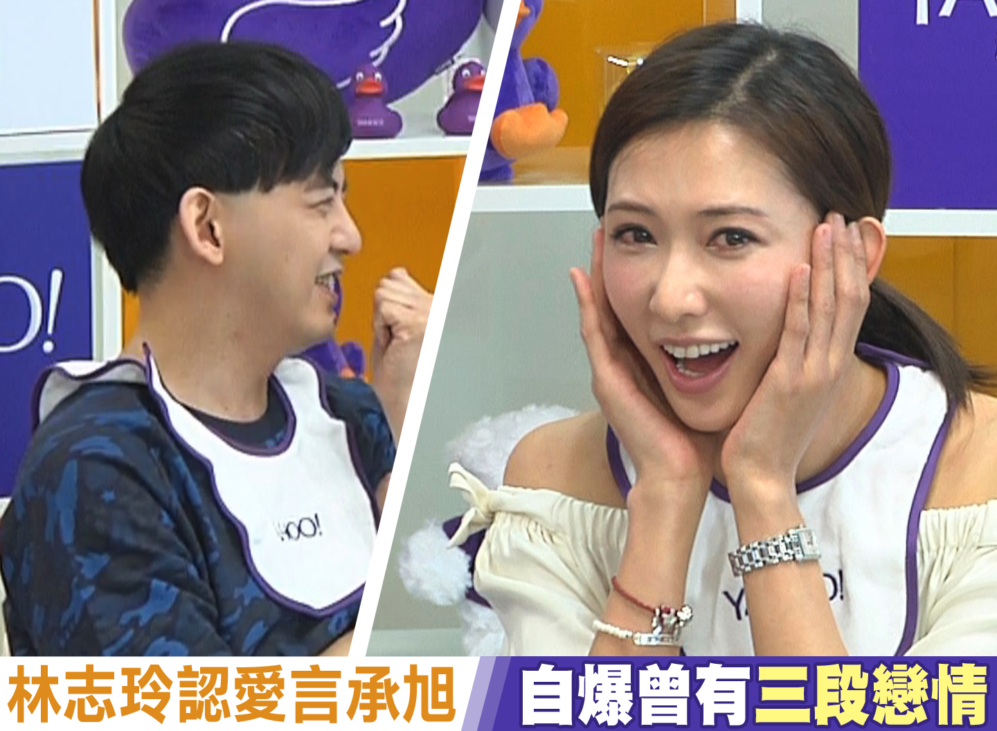 藝人 林志玲VS.主持人 黃子佼:「(戀情)一隻手算得出來,你們都知道啊,就那個和成的(邱士楷)嗎,對不對,然後言承旭嗎,還有嗎?初戀男友,三個,你四十幾歲就3個,別裝了,怎麼可能,因為我每個都差不多七年八年。」