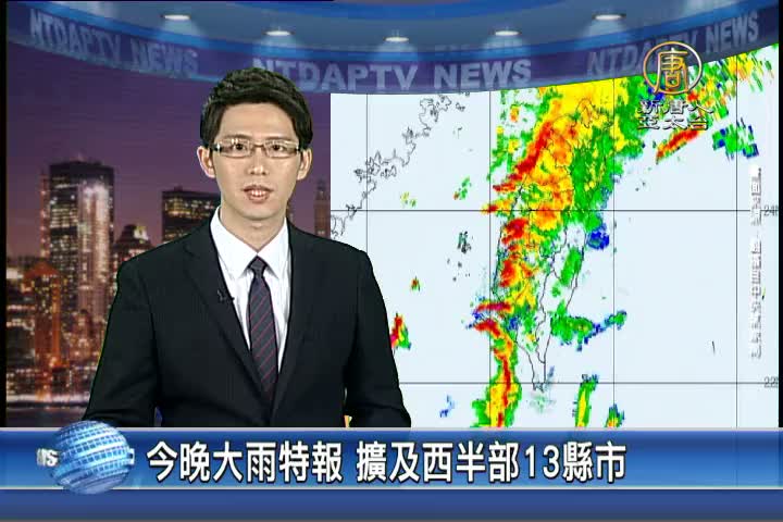 【新唐人亞太台 2016 年 05 月 10 日訊】好,晚間突如其來的大雨,觀眾朋友今晚如果要出門,請特別注意。氣象局持續發布大雨特報,受到鋒面影響,今天晚上到明天。雲林以北及臺南、高雄地區有局部大雨發生的機率,西半部13縣市,都要注意瞬間大雨、雷擊與強陣風。
