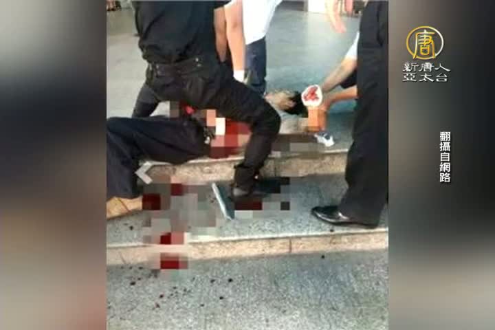【新唐人亞太台 2016 年 05 月 19 日訊】來關心中國新聞。深圳驚傳隨機砍殺事件。時間在今天下午1點47分,1名男子在沙井客運站內1樓 持刀砍人,共造成7人被砍傷送醫,據深圳市公安局寶安分局官方微博消息,這名兇嫌挑在學校附近犯案,遭砍傷的人當中有部分是學生,公安逮捕一名年約38歲的覃姓男子。一旁圍觀的民眾則是大聲喝斥「又是瘋子」、「打死他」等,兇嫌犯案動機不明。