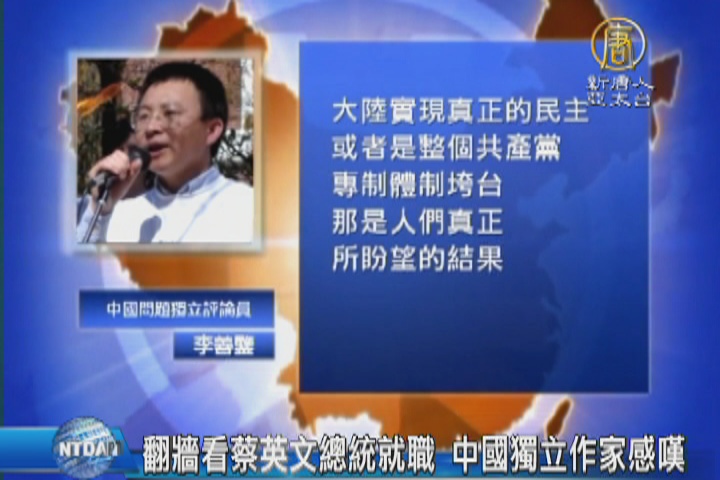 【新唐人亞太台 2016 年 05 月 23 日訊】總統蔡英文完成就職儀式,國際社會關注,更是有很多中國民眾突破網路封鎖,觀看了就職典禮,有中國獨立作家說,感受到民主帶來的力量,和中共政治很不一樣。