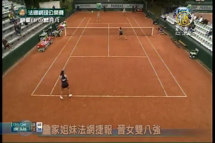 【新唐人亞太台 2016 年 05 月 30 日訊】體壇消息來看到,台灣好手 詹詠然、詹皓晴姐妹,昨天在法網女雙第三輪賽事,成功踏上8強;兩人在第3輪賽事 面對美國的布蘭格與德國選手瑪莉亞,以6:2、6:4技壓對手,拿到女雙8強門票。另外,妹妹詹皓晴,今天還有混雙賽事,台北時間晚上,要力拚4強門票。
