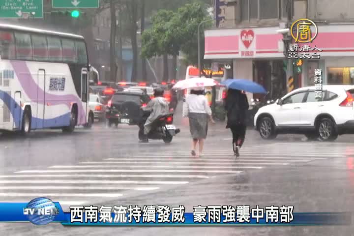【新唐人亞太台 2016 年 06 月 12 日訊】南台灣昨天下起大豪雨,中央氣象局持續對台中以南的中彰投、雲嘉南、和 高屏 等8個縣市發布豪雨特報。氣象局說,目前全台受西南氣流影響,今、明(12、13日)兩天,容易有短時間強降雨,預估西南氣流將影響台灣到週一,從週二開始,西南氣流轉為西南風,雨勢趨緩,下週三開始,又將轉為炎熱天氣。