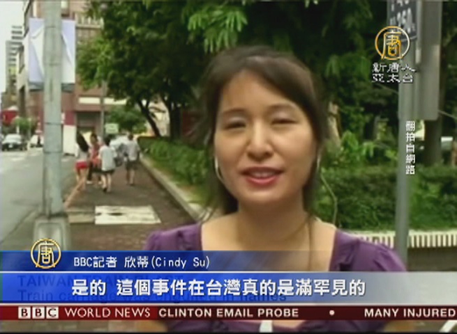 【新唐人亞太台 2016 年 07 月 08 日訊】在風雨交加的颱風夜,松山車站又驚傳台鐵車廂爆炸,讓台灣成為國際矚目的焦點。包括CNN、BBC等國際媒體都十分關注台灣的情況,BBC說,這種事件在台灣真的是非常罕見。