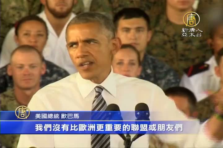 【新唐人亞太台 2016 年 07 月 11 日訊】歡迎回來。昨天下午,美國總統歐巴馬在結束對西班牙的訪問回國前,訪問了美國和西班牙軍隊官兵,在演講中,歐巴馬重申了他對歐洲的承諾,也呼籲歐洲大陸,要團結在一起。