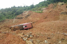 13日,一輛載有21名台灣遊客的大巴士,在前往中國福建省永定土樓景區途中,突然遇到山崩,土石將整輛車推落山腳,事故造成1人死亡20人受傷。死傷者家屬4人,今天上午從高雄出發到福建,處理善後,旅行社受訪表示,旅行團中有4人傷勢較為嚴重。