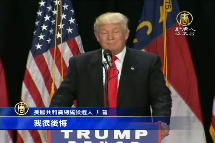 【新唐人亞太台 2016 年 08 月 19 日訊】歡迎回來,再來看到,美國共和黨總統候選人川普,宣布參選以來,今天首度承認自己尖酸言論或許會對別人造成痛苦,他對此感到遺憾。