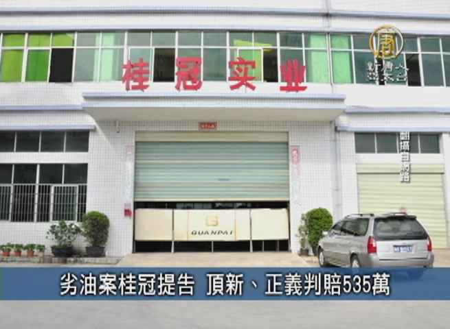 正義豬油等油品於2014年爆發劣油事件,向正義公司購買油品的桂冠實業也捲入劣油風暴中,因此向頂新、正義提告求償,新北地院今判決頂新、正義須賠償桂冠535萬餘元。
