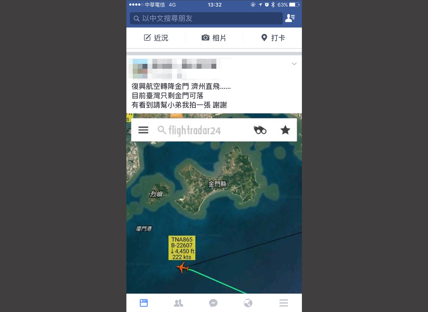 颱風影響?復興CE865濟洲飛台北 降落金門