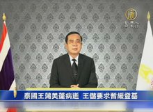 2016-10-14 12:36:01泰國國王蒲美蓬病逝,泰國總理帕拉育宣布從今天起進入一年的國喪期,同時也宣布 王儲 瓦吉拉隆功,將按憲法繼承王位,不過,瓦吉拉隆功,要求多一些時間準備,決定停暫緩登基,當局並未透露確實日期。在此之前,仍會繼續履行王儲義務。
