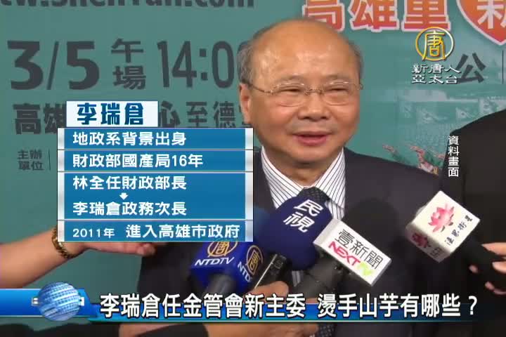 【新唐人亞太台 2016 年 10 月 19 日訊】再來看到,金管會新主委人事,今天行政院宣布,將由現任高雄銀行董事長李瑞倉接任,李瑞倉不僅曾是高雄市長陳菊的財經重臣、也是閣揆林全,在前政府時期的老部下。