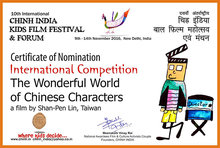 【新唐人亞太台 2016 年 10 月 28 日訊】新唐人動畫再傳捷報!《悠遊字在》、《天庭小子-小乾坤》(Heavenkid)雙雙入圍第10屆印度新德里國際兒童影展(Chinh India Kids Film Festival)「最佳動畫 」,影展活動將在11月於新德里盛大舉行。《悠遊字在》以動畫呈現漢字原義,剖析奧妙的演變過程,啟發孩子對漢字的喜愛與生命的關懷。榮獲中華民國小金鐘獎與西班牙歐洲影展最佳動畫導演獎,並入圍25個國際影展。《小乾坤》弟子規動畫以中華正統文化的豐富內涵,再次突破種族和語言的藩籬,至今共榮獲美國休士頓影展「兒童節目金獎」、以色列影展「最佳兒童動畫」等19座國內外獎項。