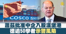 蕭茲批准中企入股漢堡港 德逾50學者示警風險