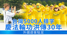 台灣5千人排字慶法輪功洪傳30年 外國遊客駐足