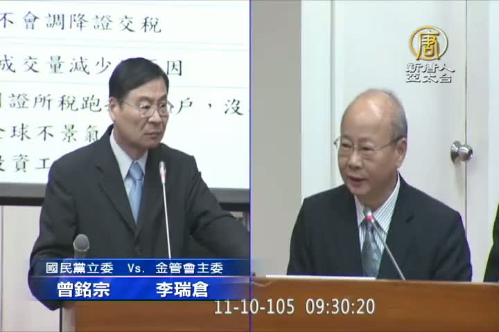 【新唐人亞太台 2016 年 11 月 10 日訊】台股交易量遲遲未見起色,金管會日前祭出兆元活絡股市方案,今天立法院財政委員會上,金管會主委李瑞倉,透露可能考慮和財政部協調,調降當沖交易稅。