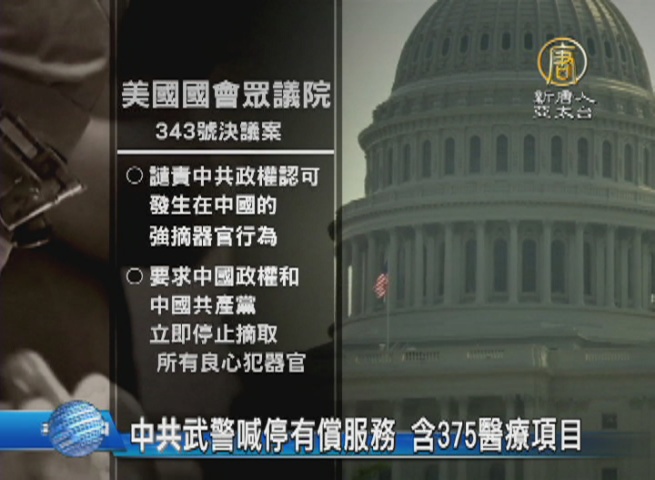 今年6月13號,美國國會眾議院一致通過了343號決議案,要求中共立即停止針對法輪功學員等良心犯的「活摘器官」行為。