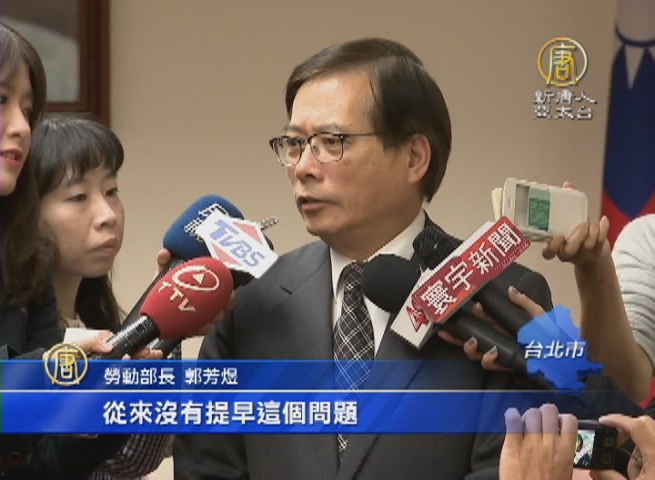 【新唐人亞太台 2016 年 12 月 22 日訊】歡迎回來。勞動部宣布,明天(23日)開始實施勞基法新制,首先從一例一休,與加班費開始上路,讓各界錯愕,不是從明年才開始嗎?怎麼提前上路了?勞動部長郭芳煜今天表示,一切都照法定程序走,明年開始,將實施第2階段的砍國定7天假,以及增加特休。