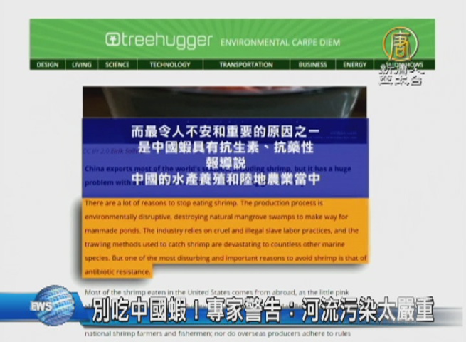 【新唐人亞太台 2016 年 12 月 29 日訊】一家著名的環保網站,呼籲美國人停止吃中國蝦,說它的生產過程破壞環境、過度使用抗生素等。而有中國專家表示,這只是冰山一角。