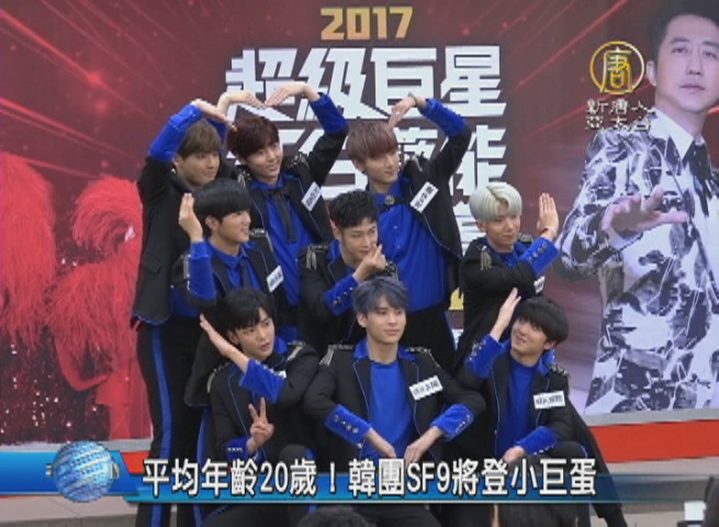 【新唐人亞太台 2017 年 01 月 06 日訊】一線韓團FTISLAND、CNBLUE的師弟團SF9,第一次來到台灣,受邀參與電視台新年節目,將登上台北小巨蛋演出。SF9,以招牌「人力風火輪」舞蹈,受到關注,九位團員,平均年齡只有20歲。