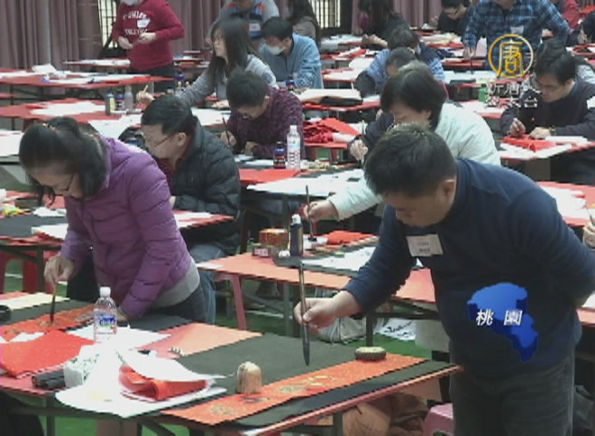 【新唐人亞太台 2017 年 01 月 23 日訊】桃園每年都會舉辦書法春聯比賽,今年賽程分成 8個組別,現場共有一千人參加,大家同台揮毫,場面盛大。