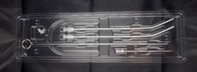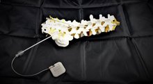 鐿鈦科技所製作的微創醫材產品用於植入式脊椎高頻電刺激器植入手術的操作示意圖(圖中植入式脊椎電刺激器為精能醫學所開發)。