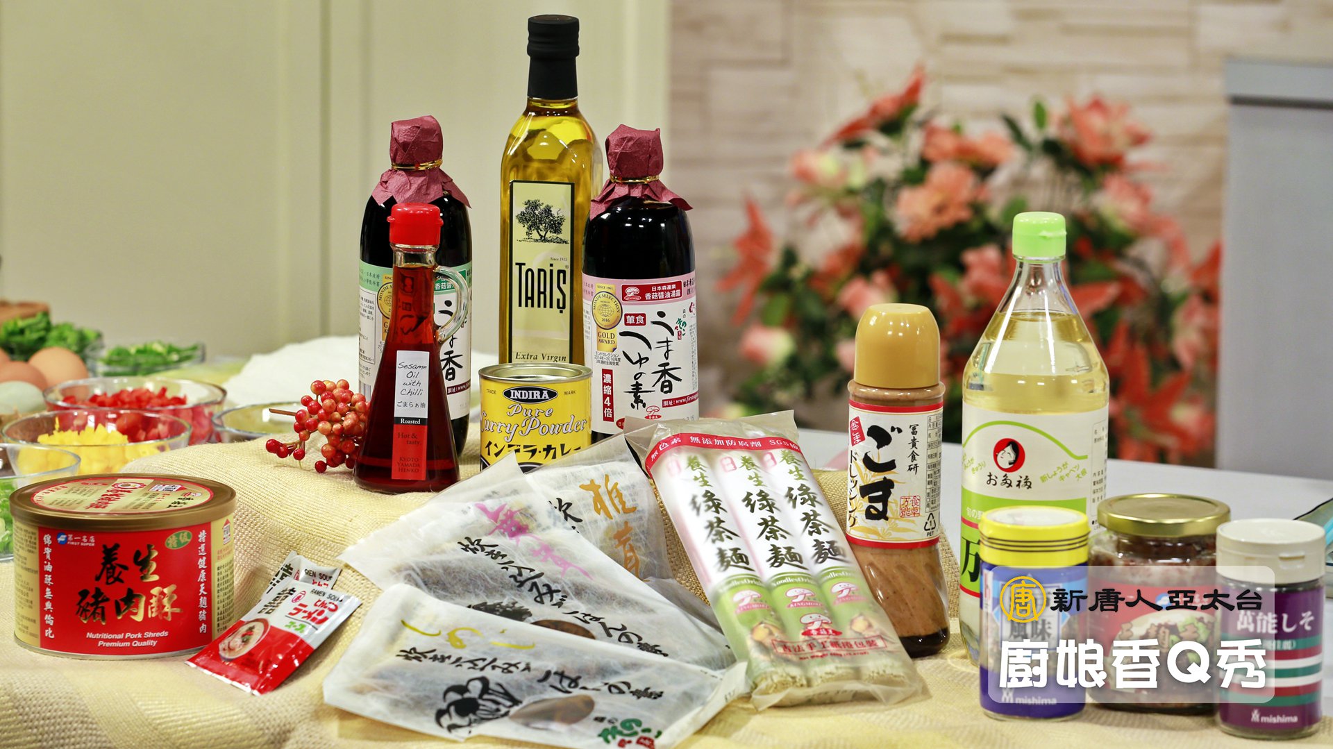 特級養生綠茶麵、天麴豬辣肉醬、天麴香蔥醬、森產業香菇醬油露、蔥末