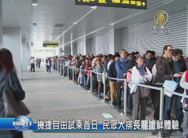【新唐人亞太台 2017 年 02 月 16 日訊】歡迎回來,機場捷運團體試乘,在昨天結束,今天,個人自由免費試乘登場, A1台北站,上午就湧現人潮,大排長龍領號碼牌,甚至有人凌晨1點,就來排隊。