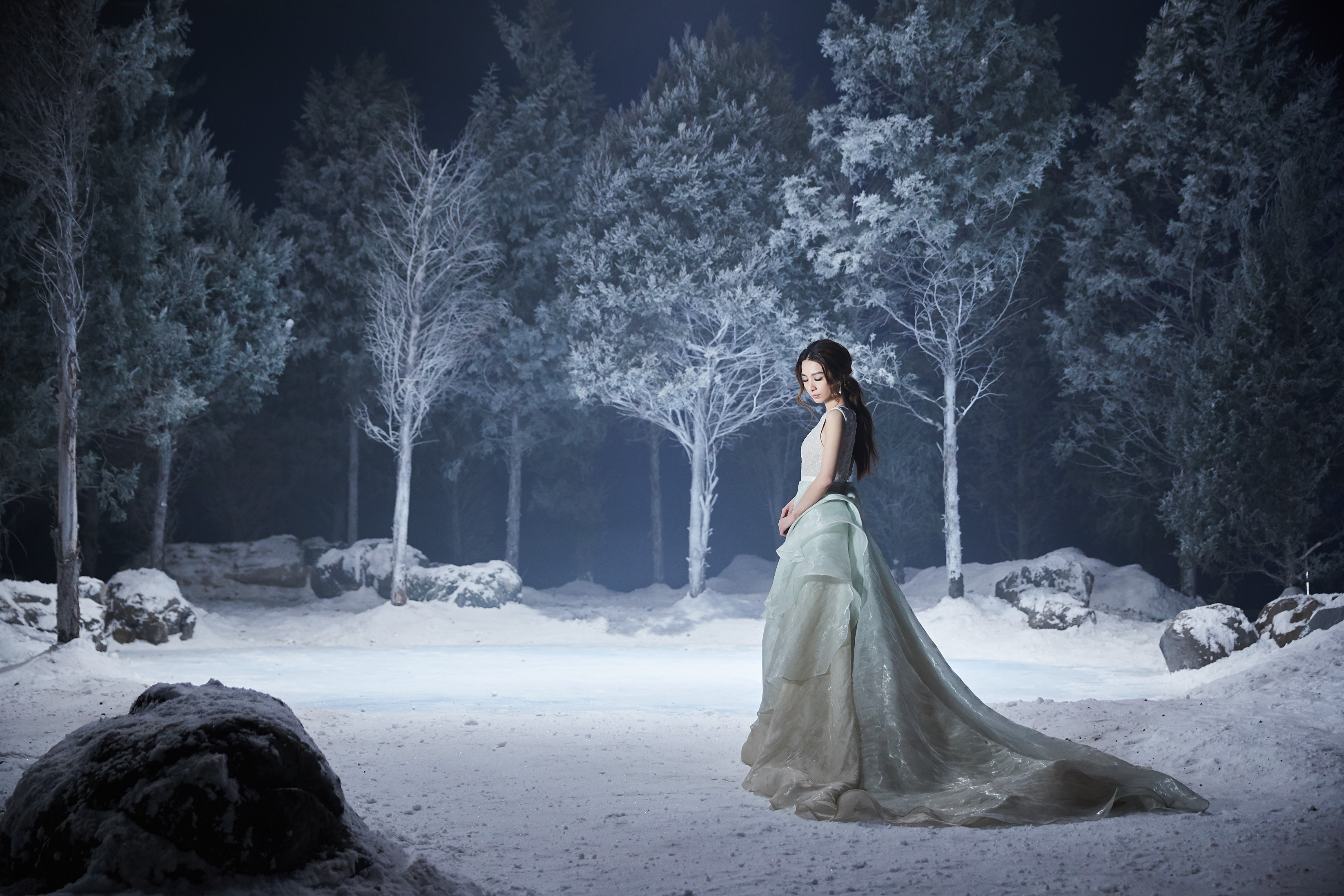拍攝MV當天,田馥甄穿著兩套無袖禮服上陣,其中一套湖水冰綠的We Couture衣服材質更薄,走在零下6度的拍片現場,導演不時的灑下雪花營造冰天雪地氣氛,也讓田馥甄咬牙笑說:「怎麼灑了雪花好像有更冷的感覺,但不管就是拼了!」井柏然也表示:「那天特別冷,我們拍攝的攝影棚溫度很低,但是Hebe真的特別敬業。我還可以穿西裝,還有燕尾服,稍微有點保暖效果,Hebe都是裙裝,非常單薄。但她一直專注在拍攝上,我們也有交流聊天,畢竟她是非常非常專業的歌手,在拍攝MV上也有很多經驗。她那天非常辛苦。」