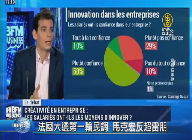 【新唐人亞太台 2017 年 03 月 04 日訊】歡迎回來。來關心法國大選最新情況,一向聲勢領先,主張脫歐的候選人,雷朋女士,在最新的一份民調中,第一次,落後獨立總統參選人馬克宏,也激勵了法國公債價格,在昨天盤中走高。