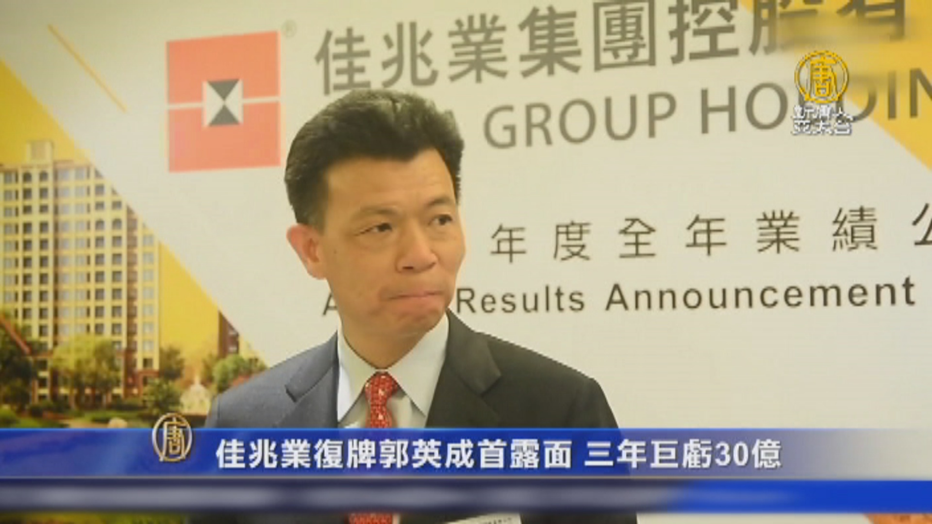 【新唐人亞太台 2017 年 03 月 29 日訊】停牌近兩年的佳兆業,星期一復牌,大升55.7%。公司公佈了近三年業績,累計虧損達30億人民幣。疑涉周永康案的佳兆業主席兼執行董事郭英成,在「神秘失蹤」兩年後首度現身,並以「酸甜苦辣」形容停牌時期。