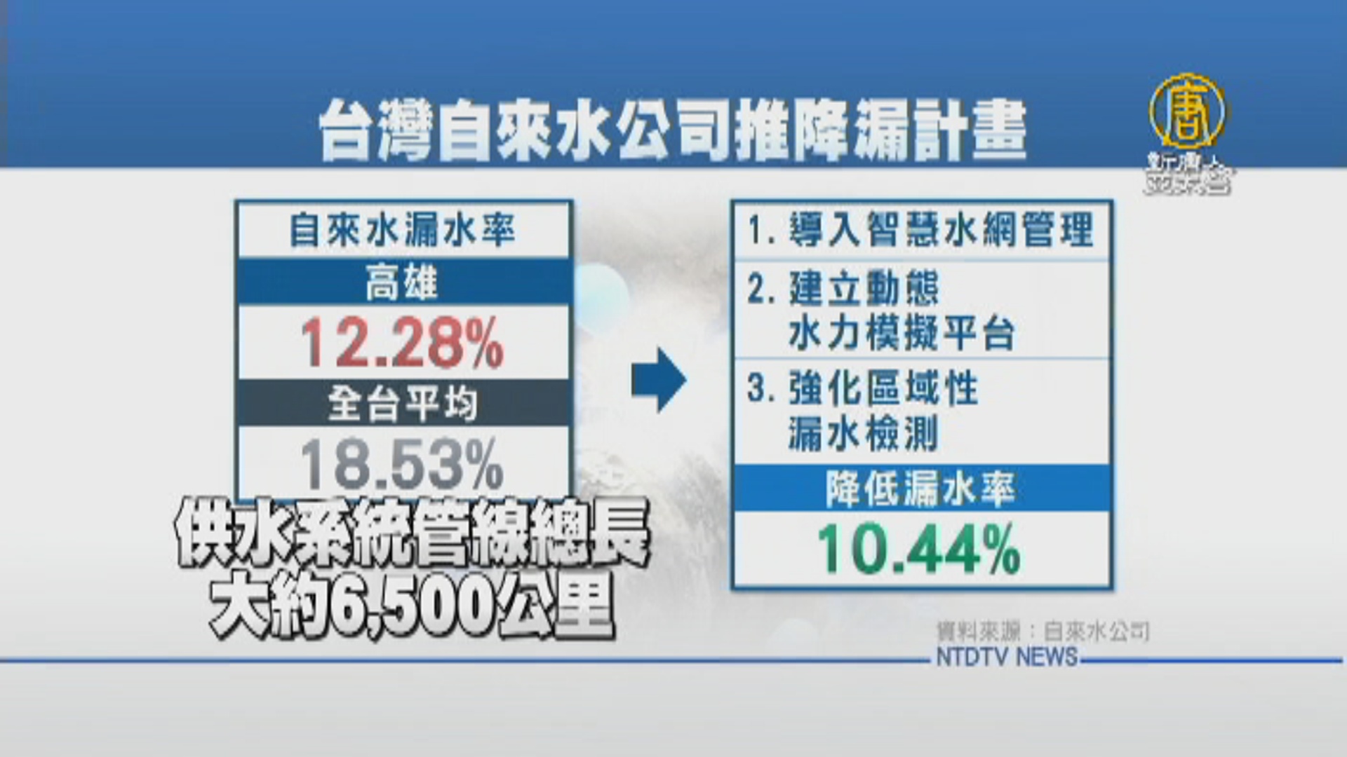 目前高雄的漏水率12.28%,低於全台平均,但供水系統的管線總長大約有6,500公里,希望透過導入智慧水網管理,強化漏水檢測,降低漏水率至10.44%,有效節約水資源。