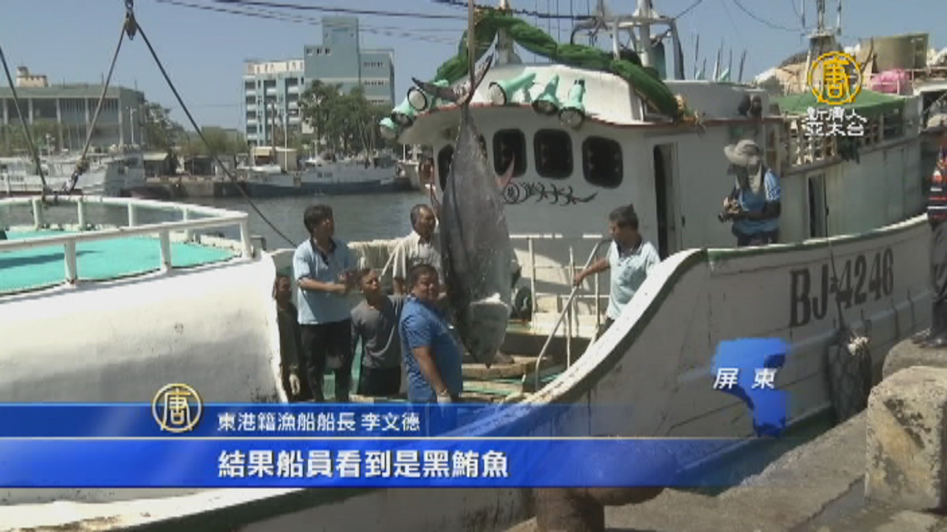東港籍漁船船長 李文德:「抓魚的時候我跟船員說,看可不可以釣到第一尾黑鮪魚,第一尾啊現在我們抓到就是第一尾,結果船員看到是黑鮪魚,大家都歡呼大叫我也非常高興,就通報電台了。」