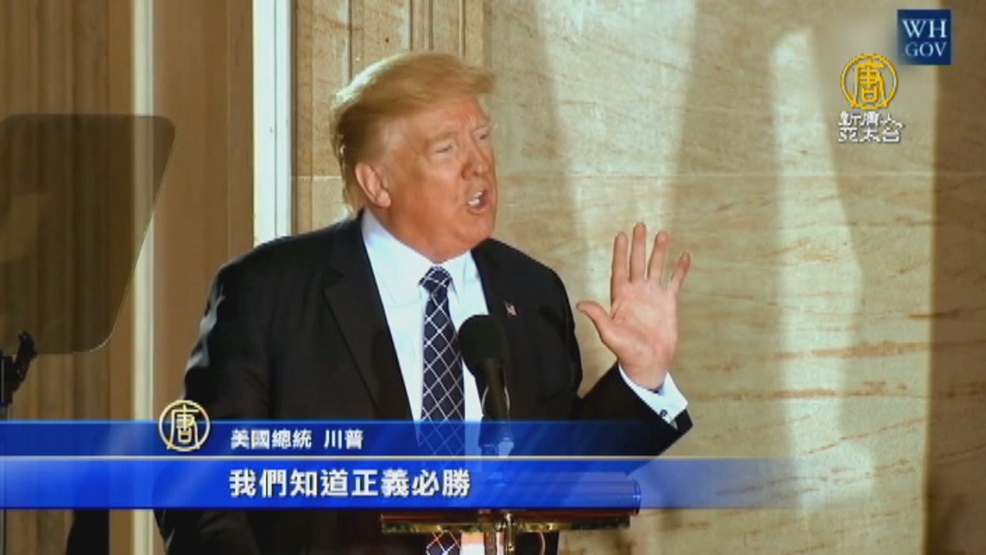 美國總統 川普:「只要我們拒絕閉上眼睛或保持沉默﹐我們知道正義必勝。」