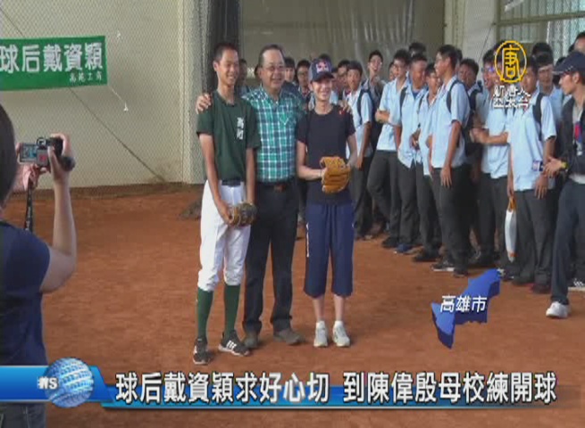 【新唐人亞太台 2017 年 05 月 04 日訊】世界球后戴資穎,周六將在高雄澄清湖棒球場擔任開球嘉賓,今天(4日)她先到旅美職棒好手陳偉殷的母校,高苑工商練習開球。