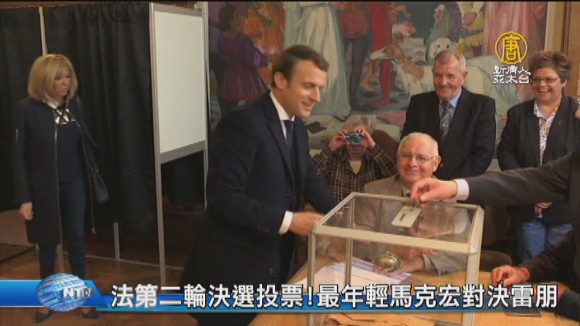 【新唐人亞太台 2017 年 05 月 07 日訊】新聞頭條,帶您看到,法國總統大選的第二輪決選,在台灣時間今天下午兩點,開始投票。投票結果將決定法國會出現史上最年輕39歲的總統,或者是第一任女總統,不論誰當選,都會改寫法國紀錄,而稍早馬克宏也和妻子一起現身,完成投票。