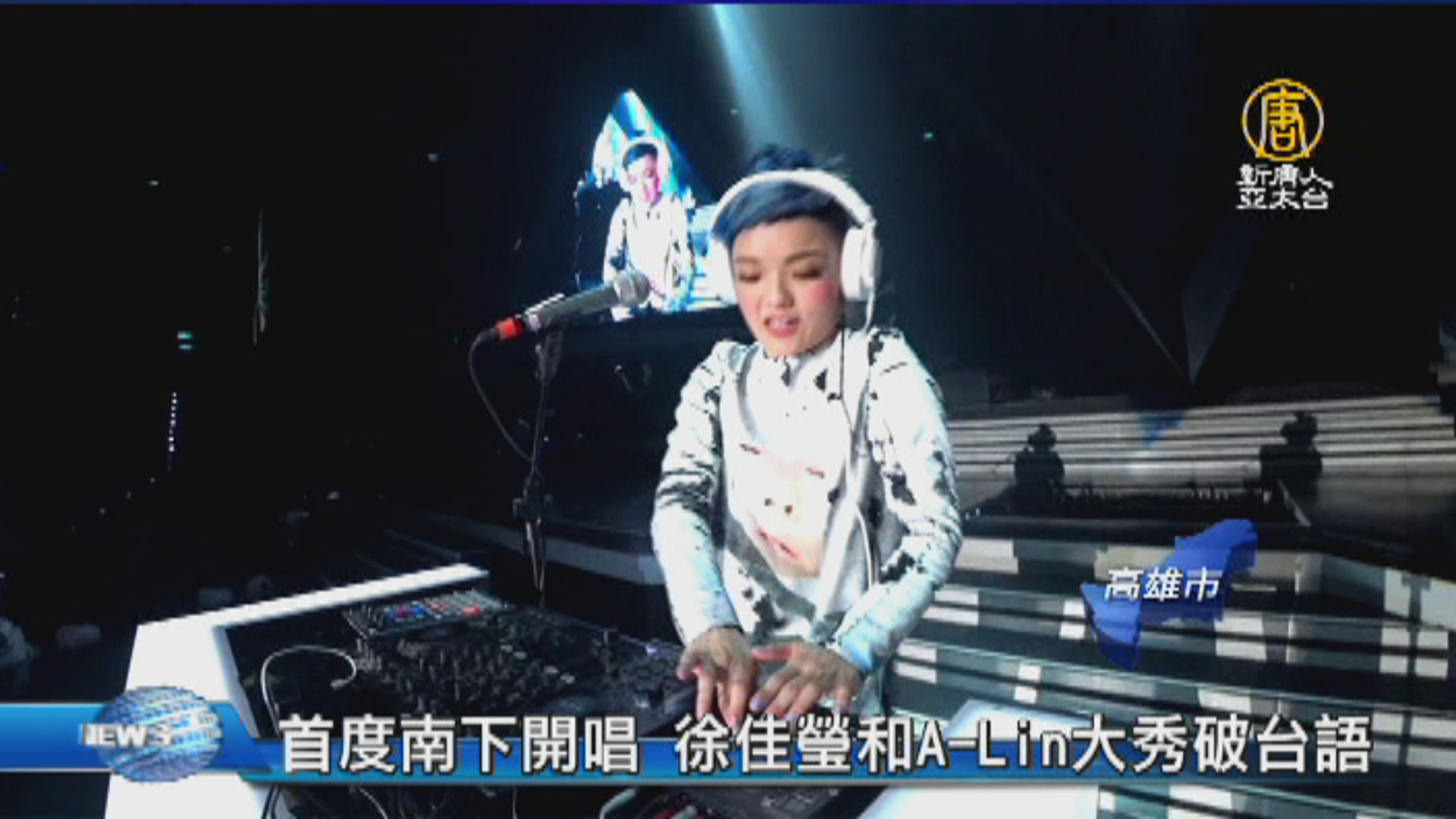 【新唐人亞太台 2017 年 05 月 07 日訊】創作歌手徐佳瑩,首度南下開唱,6日晚間站上高雄巨蛋舞台,實力派唱將A-Lin擔任嘉賓,不但帶來兩首動感舞曲,炒熱氣氛,兩個人入境隨俗互飆破台語,笑翻全場。