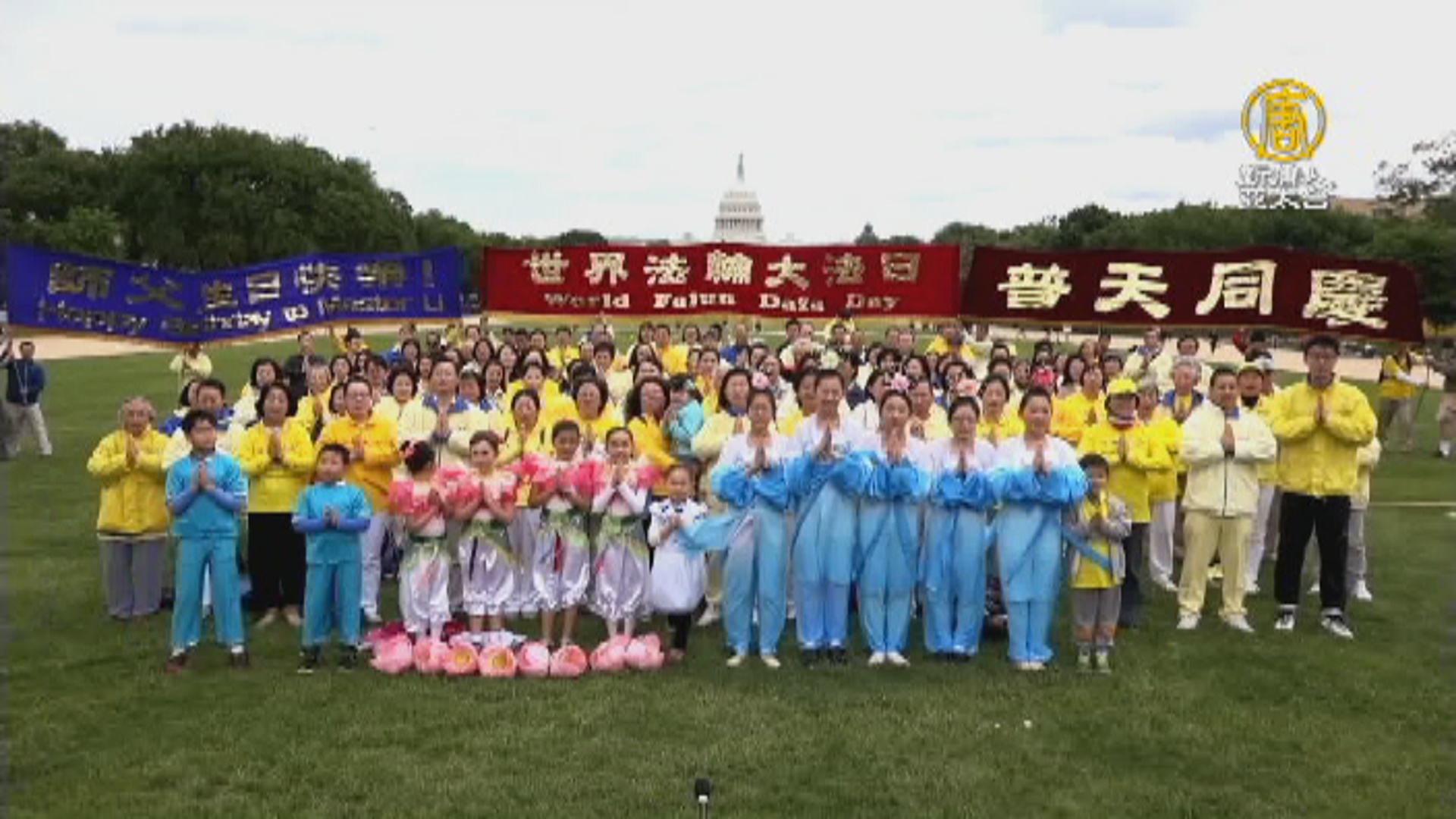 【新唐人亞太台 2017 年 05 月 09 日訊】為慶祝5月13日「世界法輪大法日」,美國首都華盛頓的部份法輪功學員週日(5月7日)在國家大草坪,以集體煉功、文藝表演等方式,與遊客們一起分享法輪大法的美好,同時也恭賀創始人李洪志先生66歲華誕。