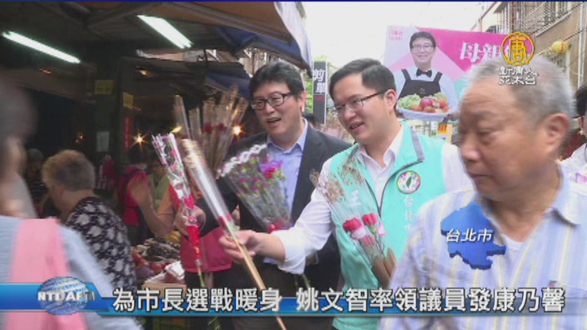 【新唐人亞太台 2017 年 05 月 12 日訊】母親節不只有商機,連政治人物也搶曝光機會,有意角逐下屆台北市長的民進黨立委姚文智,今天(12日)一早就帶著北投在地議員、到傳統市場發放康乃馨。