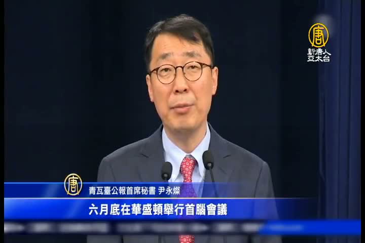 青瓦臺公報首席秘書 尹永燦:「韓國與美國原則上同意,六月底在華盛頓舉行首腦會議。」