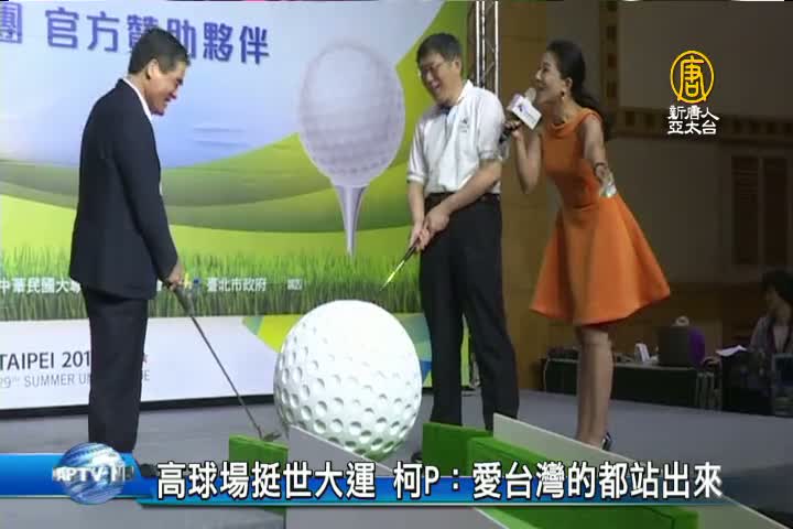 贊助記者會上,還安排柯文哲和許董事長一同推桿,祝福世大運順利,但從沒打過高爾夫球的柯文哲,拿起球竿顯得手足無措,但在專業高球選手指點下,加上特地準備的超大高爾夫球,才讓柯文哲鬆了一口氣。