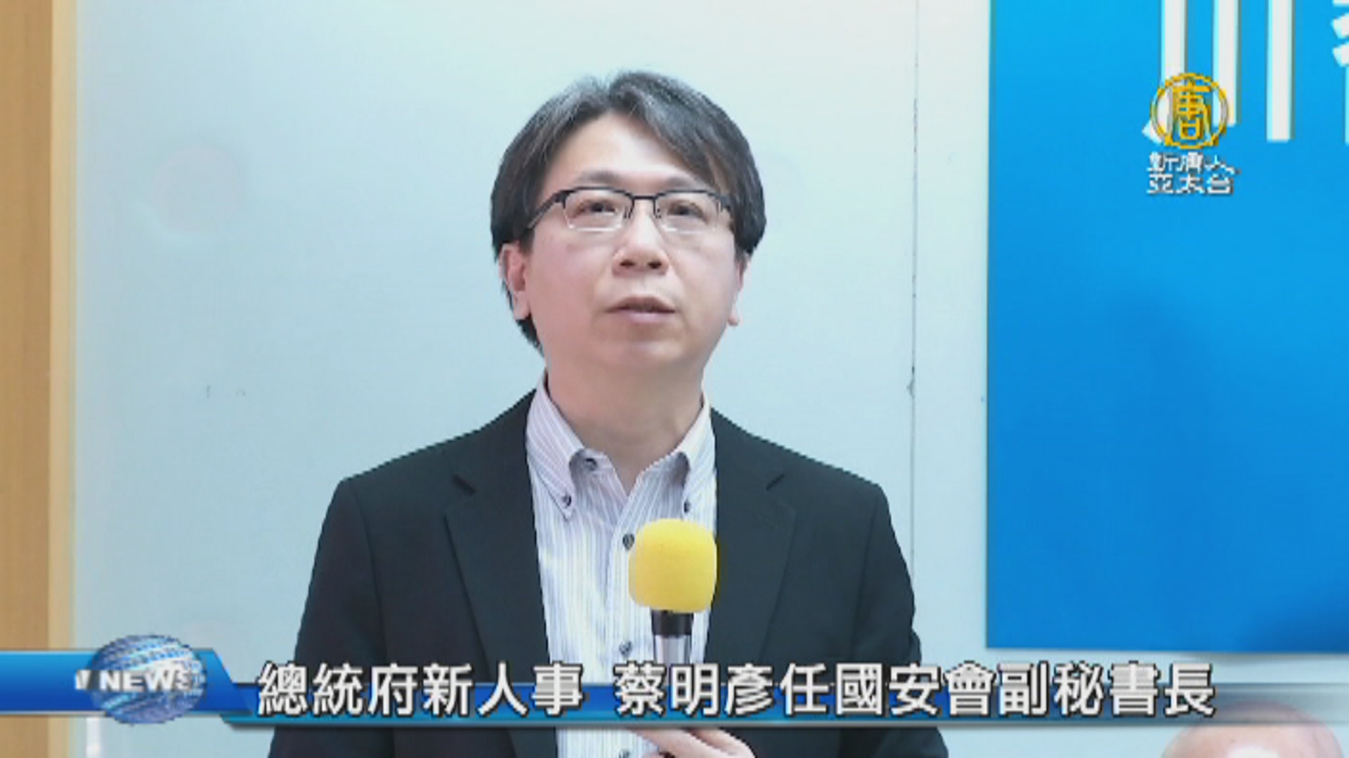 【新唐人亞太台 2017 年 05 月 26 日訊】鏡頭轉回台灣。懸缺已久的總統府國安會副秘書長一職,確定由中興大學國際政治研究所教授蔡明彥接任。總統府在稍早,公布這項新人事。